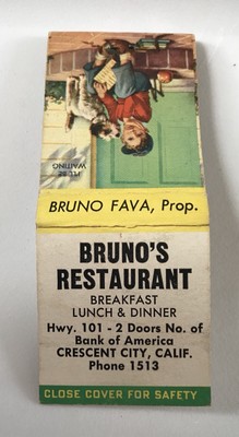 Old Matchbook Cover Bruno S Restaurant Hwy 101 Crescent City Ca Bruno Fava Ebay