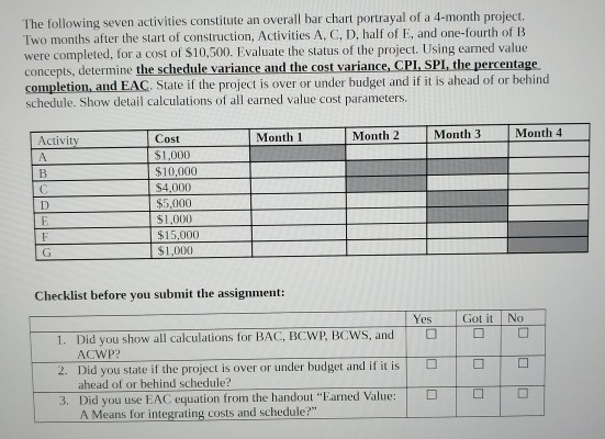 Solved The Following Seven Activities Constitute An Overa Chegg Com