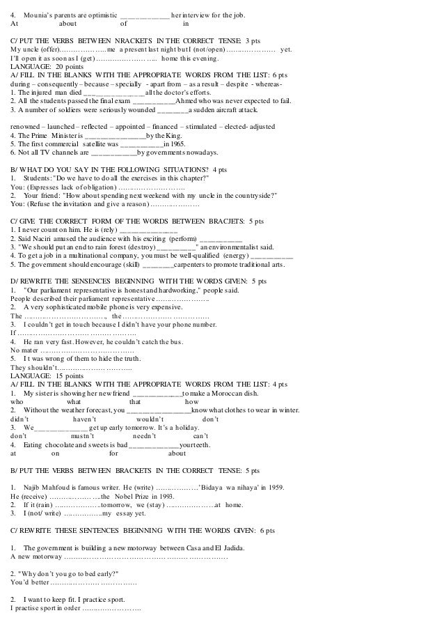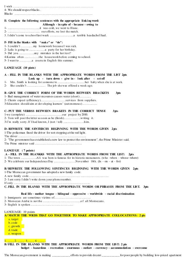 2 Bac Language Exercises Baccalaureate Exams 2005 Till 2010