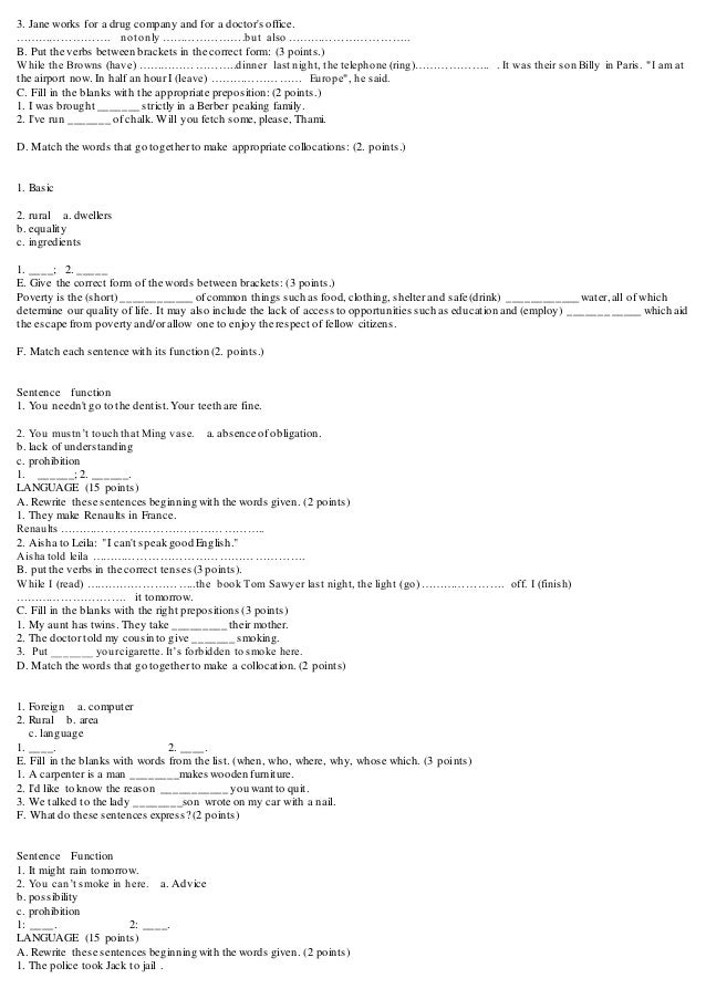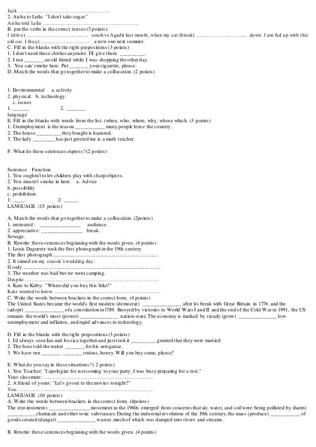 English Test For First Year Bac Students Esl Worksheet By Bahamad