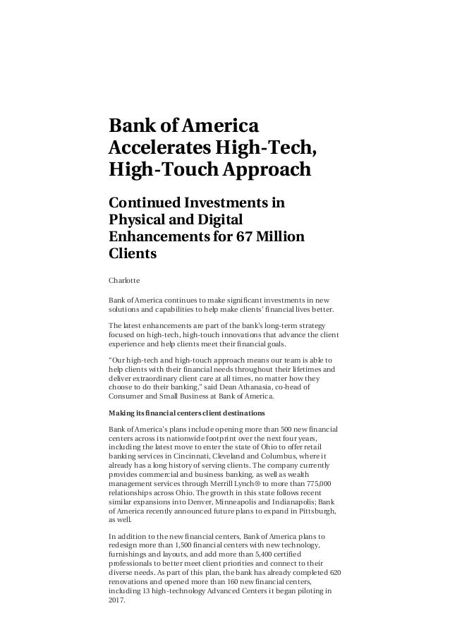 Bank Of America Newsroom Bac Accelerates High Tech High Touch Appro